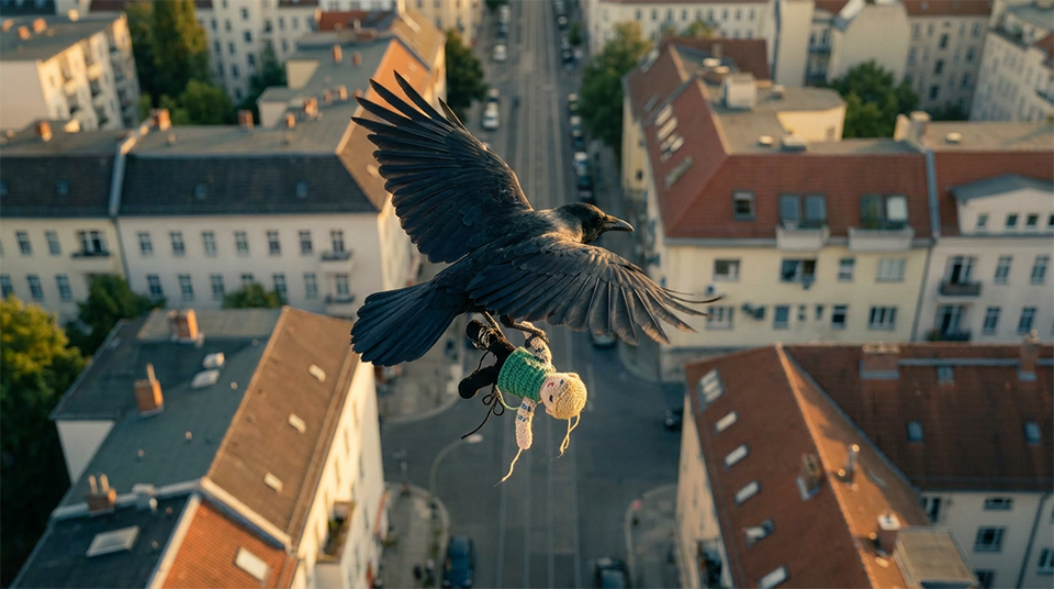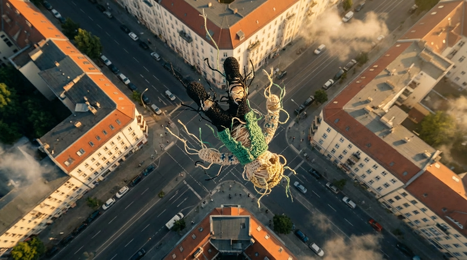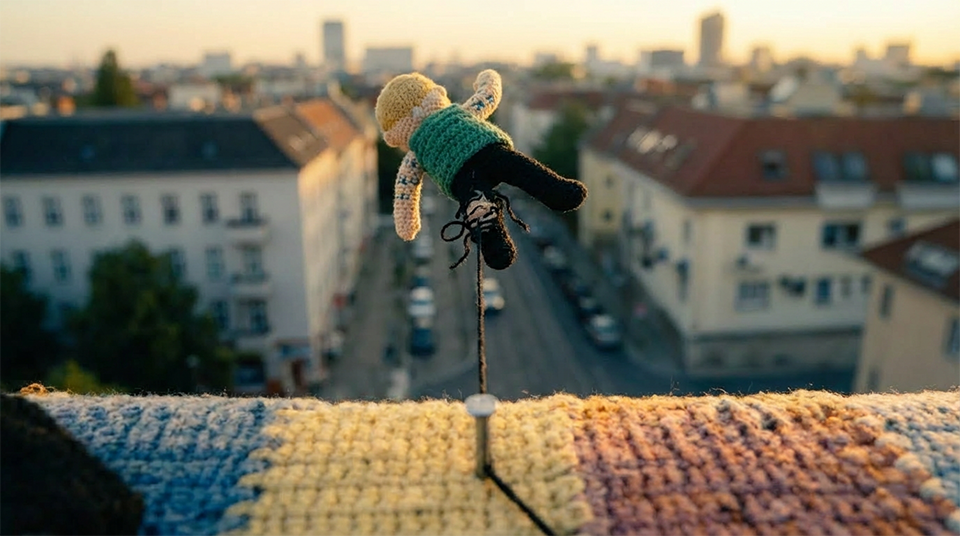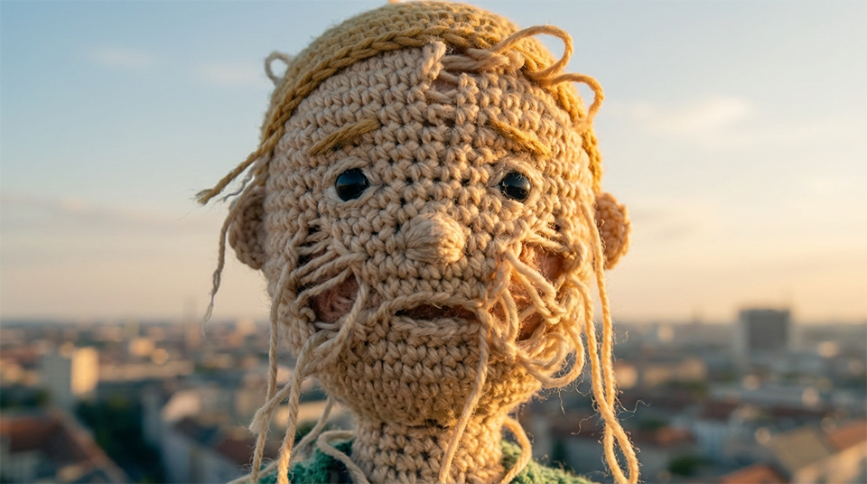 For this trailer, I was asked to reimagine Kontra K as a knitted character performing on a rooftop stage. As he catches his leg on a nail and falls, his body gradually begins to unravel in midair. A key focus of the project was maintaining strong visual consistency of the character across scenes while ensuring the knitted structure remained authentic and believable throughout the transformation.